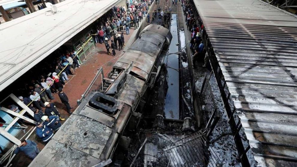 نقلت كل وسائل الإعلام أخبار حادثة حريق القطار في محطة مصر الأربعاء 2019/2/27م، وكشفت مصادر مسئولة بالسكة الحديد التفاصيل الكاملة لأسباب حادث حريق قطار محطة مصر، وأن الحريق وقع نتيجة تصادم جرار قطار وعربة “الباور” الخاصة بالتكييف بصدادات نهاية رصيف رقم 6 بالمحطة، حيث أدى دخول جرار القطار بسرعته إلى تصادم قوي وانفجار تانك السولار بالجرار وحدوث حريق نتج عنه مصابون ووفيات بين الركاب الذين كانوا موجودين على الرصيف واحتراق بعض المكاتب المجاورة لرصيف 6 و8 والمحصورة بين أرصفة بحري وقبلي بمحطة مصر. (اليوم السابع)، وحمل رئيس هيئة السكة الحديد مسئولية الحادث إلى سائق الجرار الذي ترك الجرار يسير من ورش أبو غاطس المجاورة لمحطة مصر بدون وجوده.