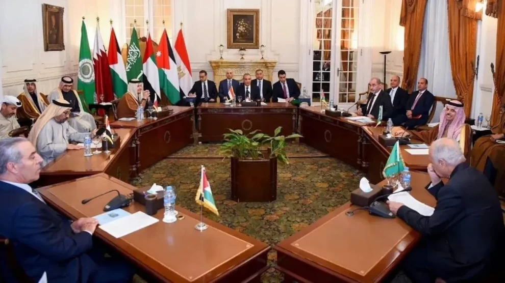 عُقد اجتماع في القاهرة في بداية شباط/فبراير 2025م، ضم وزراء خارجية كل من الأردن، الإمارات، السعودية، قطر، ومصر، بالإضافة إلى أمين سر اللجنة التنفيذية لمنظمة التحرير الفلسطينية، وأمين عام جامعة الدول العربية، لمناقشة التطورات الأخيرة في غزة والقضية الفلسطينية. جاء هذا الاجتماع في أعقاب اتفاق لوقف إطلاق النار في غزة وتبادل الأسرى، بوساطة مصرية وقطرية، وبدعم من أمريكا.