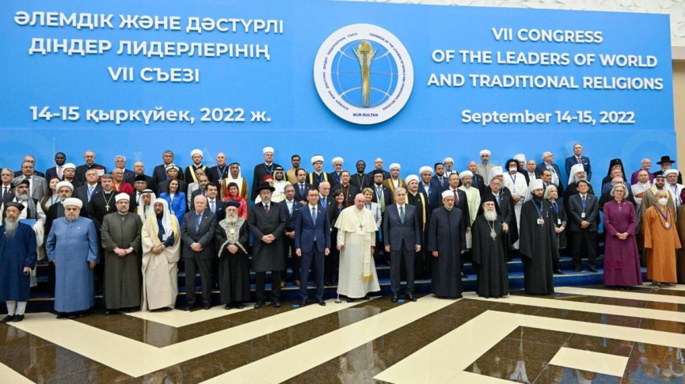 نقلت شبكة الميادين على موقعها الخميس 2022/9/15م، دعوة شيخ الأزهر علماء الأديان ورموزها المختلفة إلى لقاء خاص يتدارَسون فيه بصراحة ووضوح الواجب الملقى على عاتقهم وعاتق القادَة والسِّياسيِّين وكِبار الاقتصاديِّين، حيال الكوارث الأخلاقيَّة والطبيعيَّة، التي باتت تُهدِّد مستقبل البشريَّة بأكملها، جاء ذلك في كلمته بافتتاح المؤتمر السابع لزعماء الأديان العالمية والتقليدية، الأربعاء، بحضور الرئيس الكازاخي قاسم جـومارت توكاييف، والبابا فرنسيس بابا الفاتيكان، وأوضح شيخ الأزهر أنّ هذا اللقاء “سيتدارَسون فيه، بصراحة ووضوح تامَّين، ماذا عليهم وماذا على غيرهم من القادة والسياسيين وكبار الاقتصاديين من الواجبات والمسؤوليات حيال هذه الكوارث الأخلاقية والطبيعية، والتي لا يرتاب أحد في أنّها باتت تهدد مستقبل البشرية بأكملها”. وأشار إلى “ما تعانيه البشرية اليوم من رعب وخوف بسبب التغير الفُجائي في ظواهر الطبيعة والمناخ (…)، وما حاق بها في الآونة الأخيرة من ممارسات سياسية استعلائية هزت أركان الاقتصاد الدولي (…) وأزمات طاحنة طالت لقمة الخبز وجرعة الماء، فضلاً عن ترويع الآمنين وقتلهم وتهجيرهم وإجلائهم عن ديارهم وأوطانهم”.