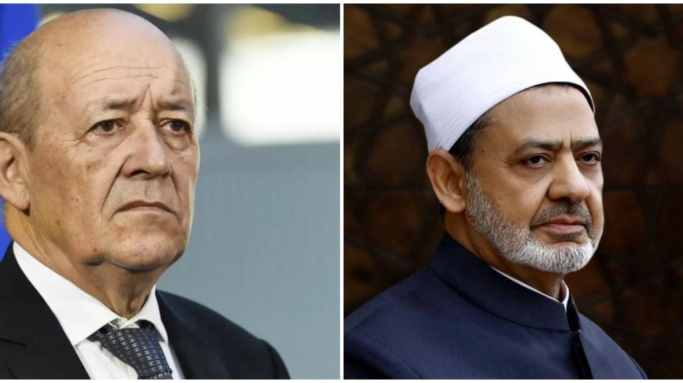 ذكرت وسائل الإعلام كصدى البلد واليوم السابع وغيرها الأحد 2020/11/08م، قول شيخ الأزهر لوزير خارجية فرنسا خلال لقائه، إن المسلمين حكاماً ومحكومين يعلنون رفضهم القاطع للإرهاب الذي يرفع راية الإسلام، فالإسلام ونبيه والمسلمون براء من الإرهاب، مضيفا وأنا وهذه العمامة الأزهرية حملنا الورود في ساحة الباتاكلان ورفضنا الإرهاب وأرسلنا التعازي في ضحايا الإرهاب، وأكد شيخ الأزهر أنه حين يكون الحديث عن الإسلام ونبيه ﷺ فأنا لا أجيد التحدث بالدبلوماسية، وسأكون دائماً أول من يحتج ضد أي إساءة إلى ديننا ونبينا، وأنا أتعجب حينما نسمع تصريحات مسيئة مثل التي سمعناها لأن هذه التصريحات تسيء إلى فرنسا وتبني جداراً من الكراهية بينها وبين الشعوب العربية والإسلامية، وهذه التصريحات يستغلها المتطرفون في القيام بأعمال إرهابية، وشدد الإمام الأكبر على أن صدره واسع للحديث في أي شيء لكن الإساءة لنبينا محمد ﷺ مرفوضة تماماً، وإذا كنتم تعتبرون الإساءة لنبينا حرية تعبير فنحن نرفض هذه الحرية شكلاً ومضموناً، وسوف نتتبع الذي يسيء إلى نبينا في المحاكم الدولية حتى لو أمضينا عمرنا كله في الدفاع عن النبي ﷺ، وأعرب شيخ الأزهر عن استعداد الأزهر للتعاون مع فرنسا وعلى نفقة الأزهر لتصحيح المفاهيم المغلوطة عن الإسلام ومحاربة الفكر المتطرف والتشدد داخل فرنسا.