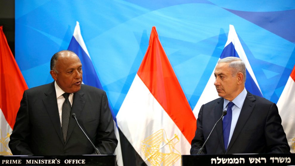 نقل موقع 24 الخميس 2017/8/17م، تأكيد وزير الخارجية المصري سامح شكري التزام بلاده الثابت بمعاهدة السلام المؤرخة 26 آذار/مارس 1979، وملاحقها، وبروتوكول القوة متعددة الجنسيات والمراقبين، وجميع التفاهمات ذات الصلة الموقعة بين البلدين بعد التوقيع على اتفاقية ترسيم الحدود مع السعودية، وقال وزير الخارجية “أود أن أؤكد أن جمهورية مصر العربية لن تقبل بأي تعديل على الاتفاقية، يقصد الترتيبات بشأن مهام القوة متعددة الجنسيات، دون القبول الرسمي المسبق لحكومة (إسرائيل)”، وأضاف “على ضوء تبعات هذه الاتفاقية، عند دخولها حيز النفاذ، فيما يخص مضيق تيران، وجزيرتي تيران وصنافير، أرفق مع هذا الخطاب الذي تم تلقيه من محمد بن سلمان بن عبد العزيز آل سعود، ولي العهد بالمملكة العربية السعودية النائب الثاني لرئيس الوزراء وزير الدفاع، الموجه لشريف إسماعيل، رئيس مجلس وزراء جمهورية مصر العربية، بشأن الالتزامات التي تعهدت حكومة المملكة العربية السعودية بشكل أحادي بالوفاء بها”، وتابع “إني أتطلع لتلقي قبول سعادتكم لمضمون الخطاب المرفق، باعتباره اعترافا من المملكة العربية السعودية، والتزاما منها بالترتيبات القائمة فيما يخص مضيق تيران، وجزيرتي تيران وصنافير”.